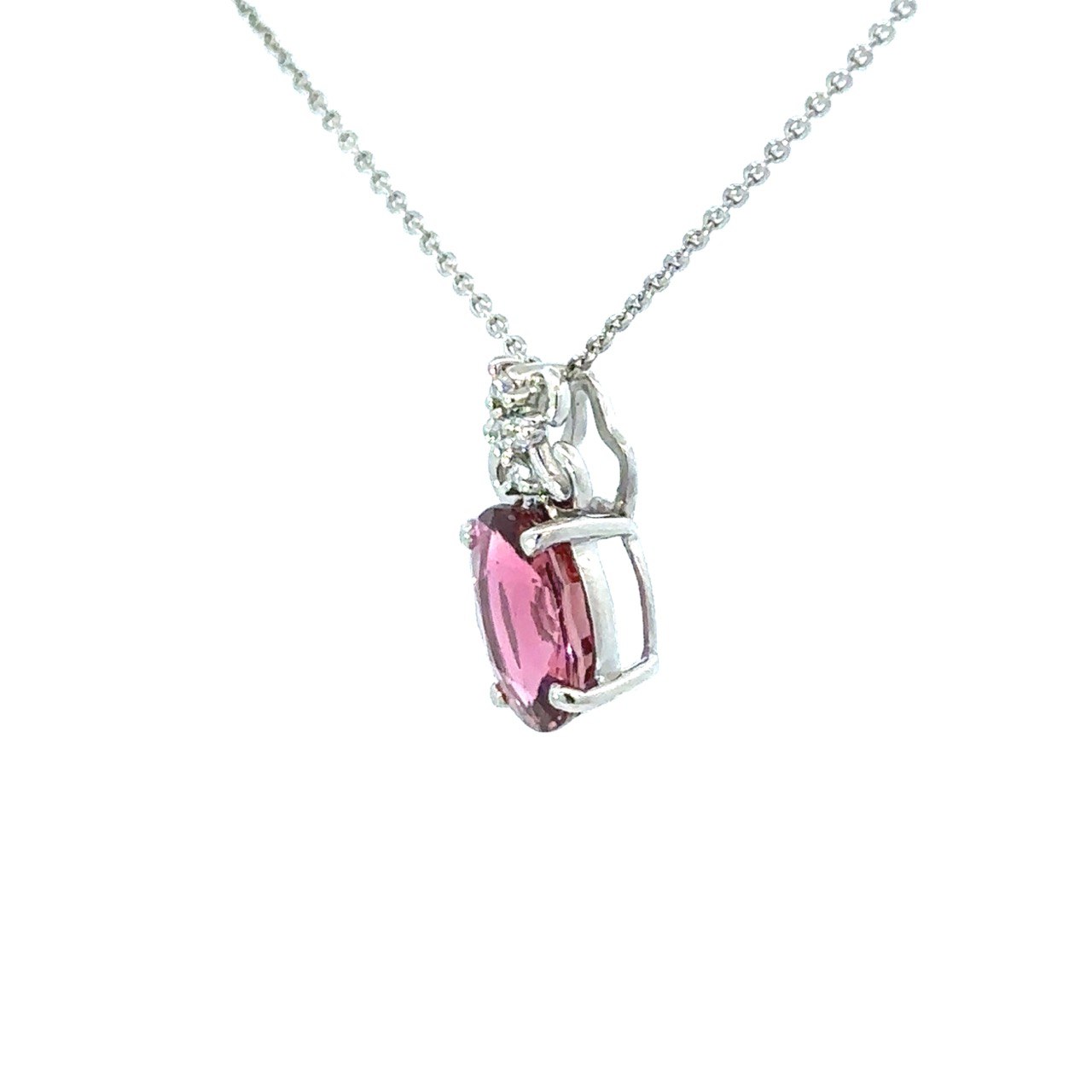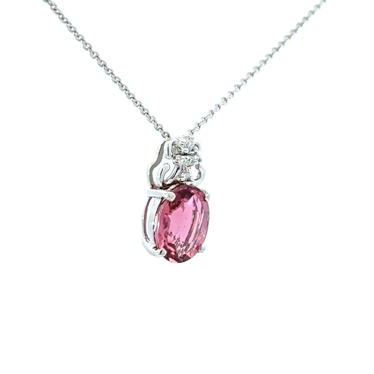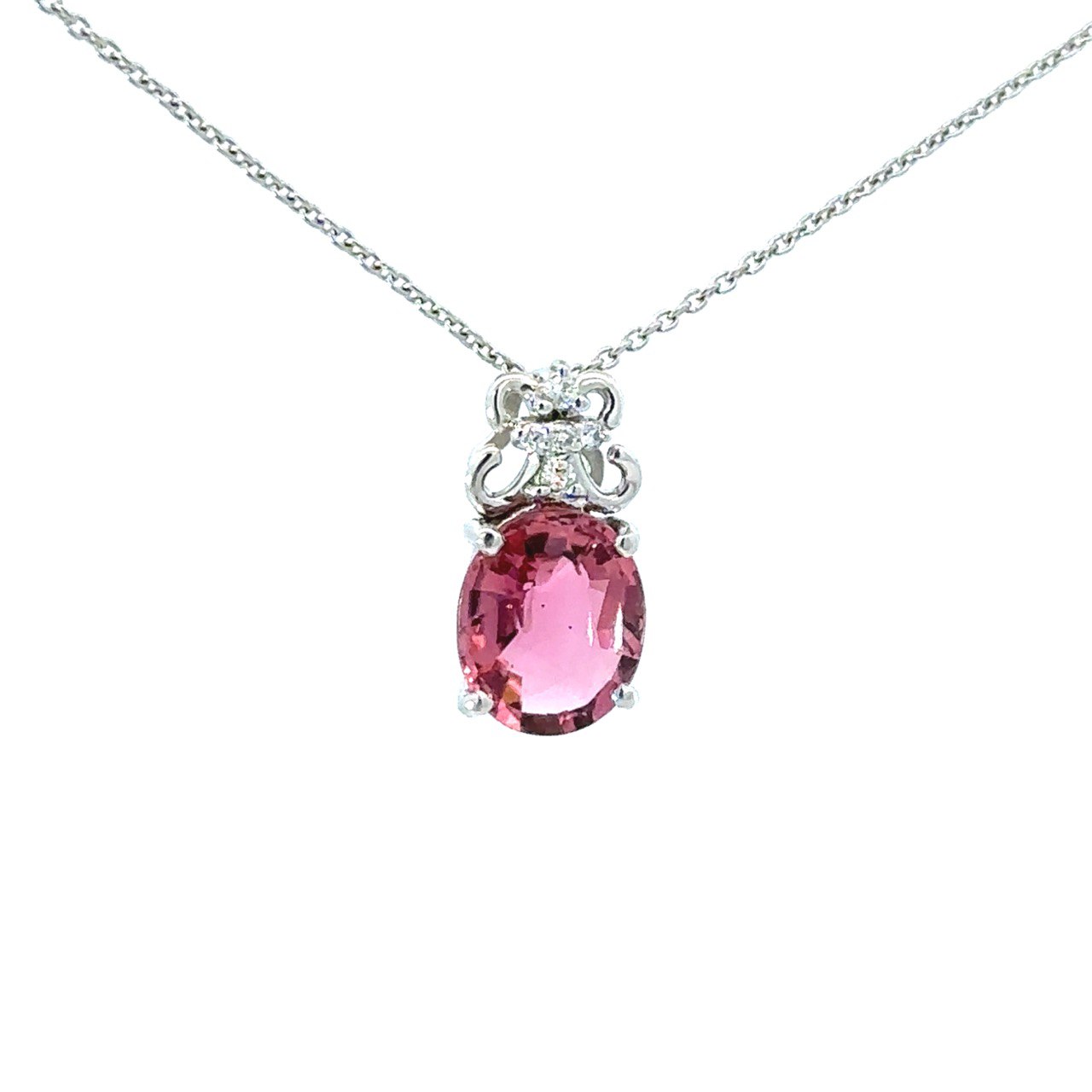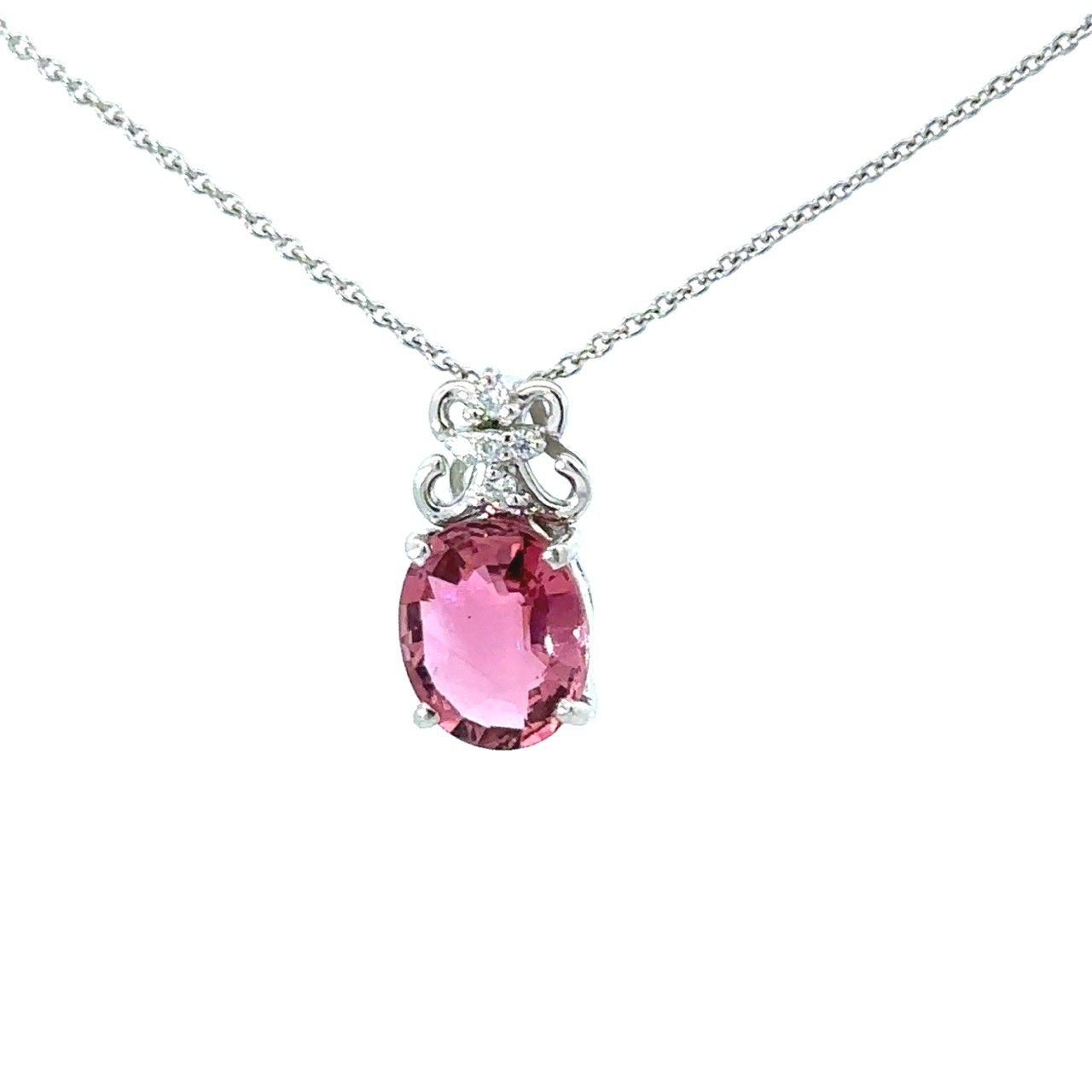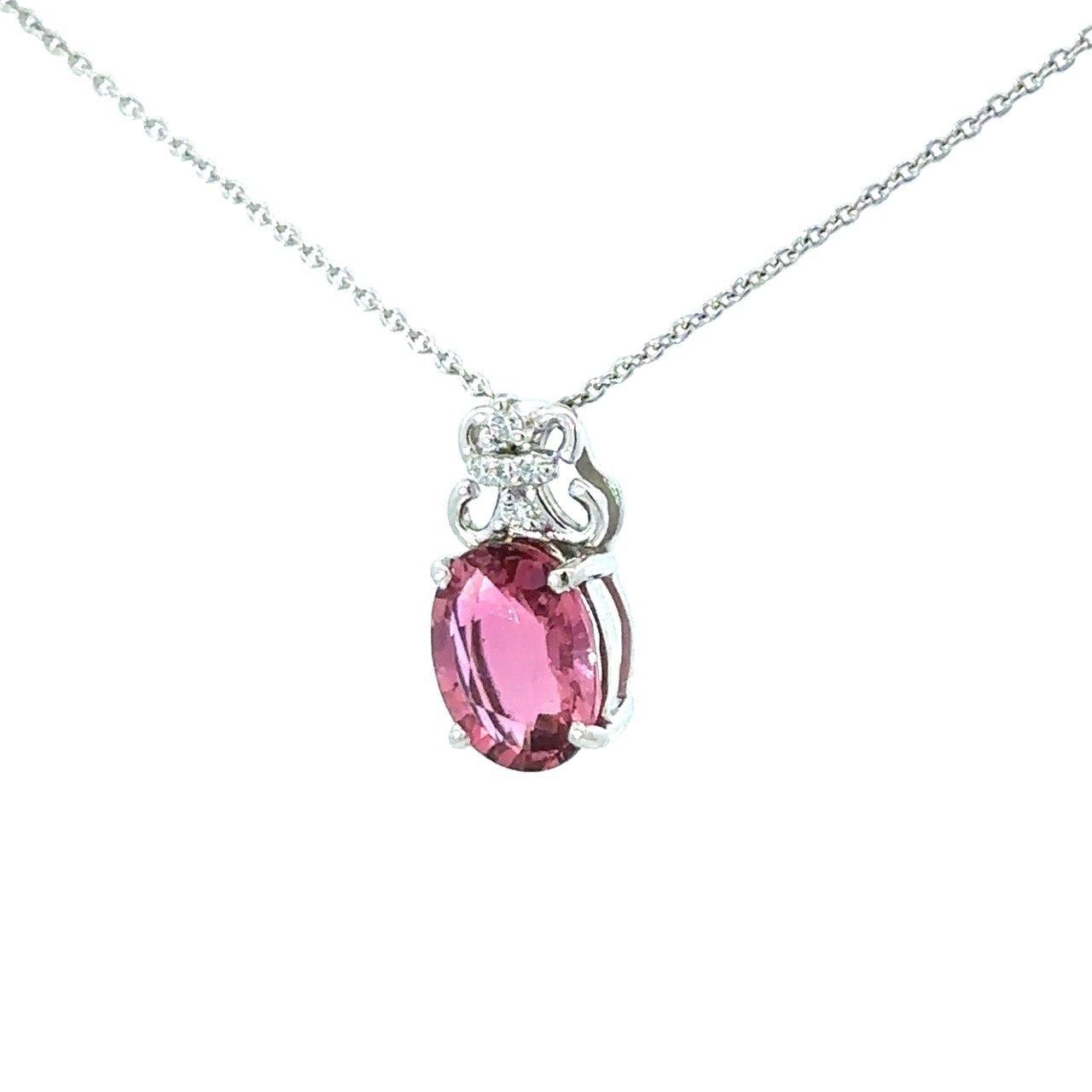 中央には存在感のある1.82ctのピンクトルマリンをセッティングし、透明感のあるピンクの輝きが、胸元を華やかに彩ります。