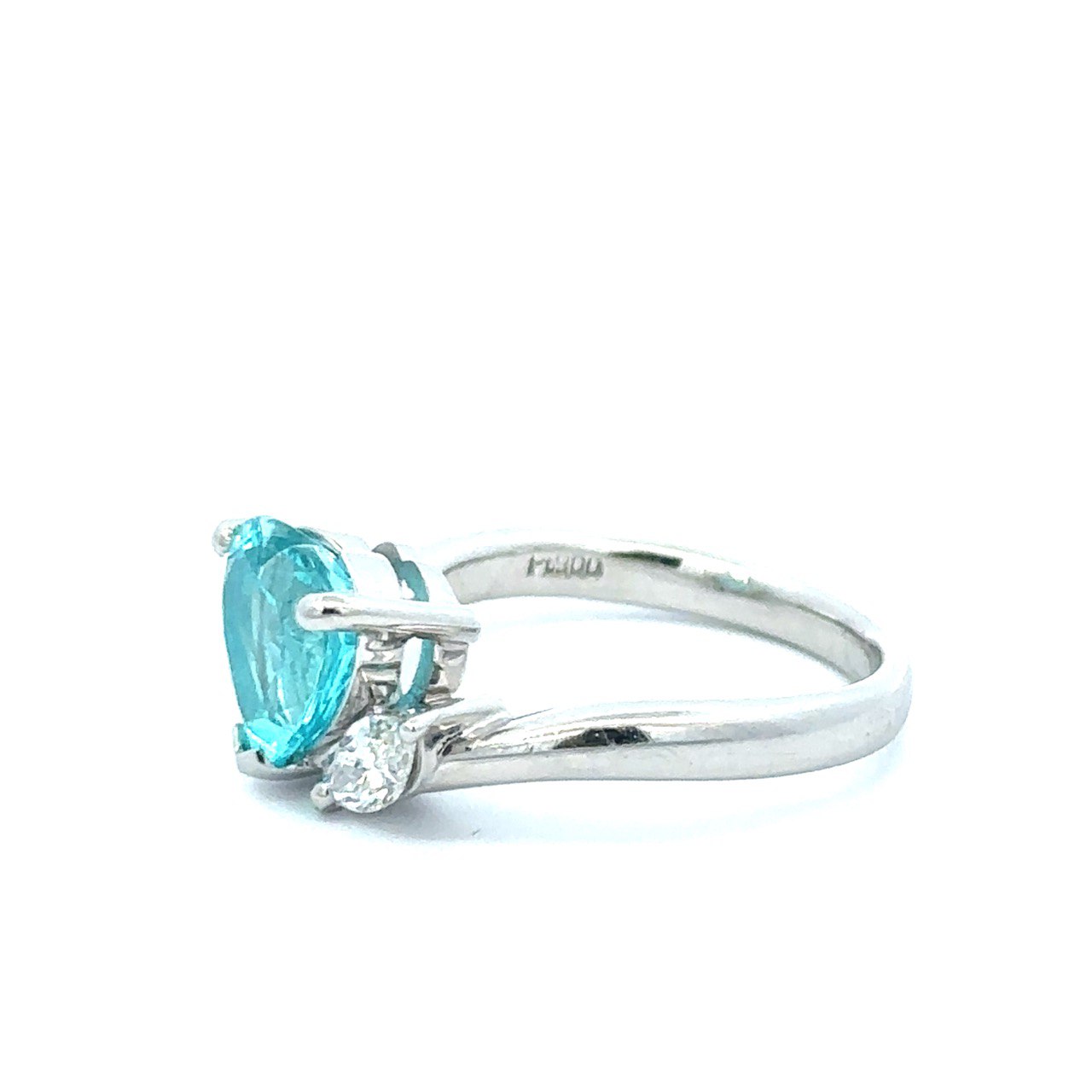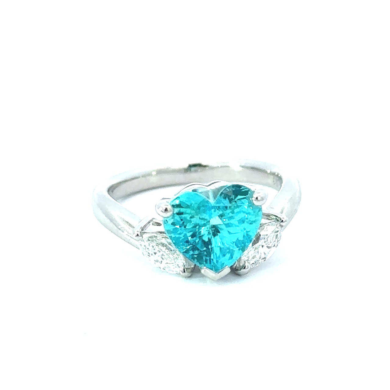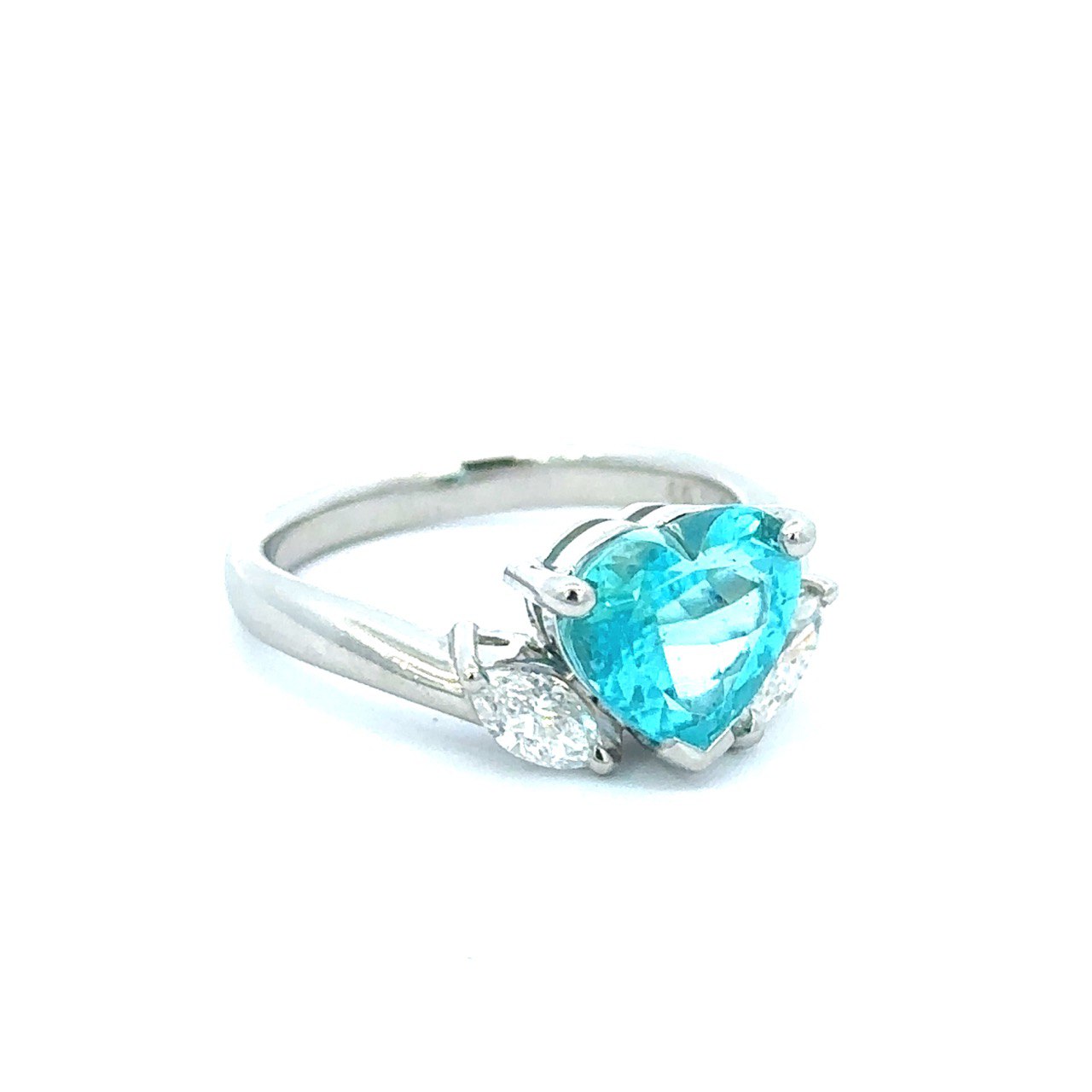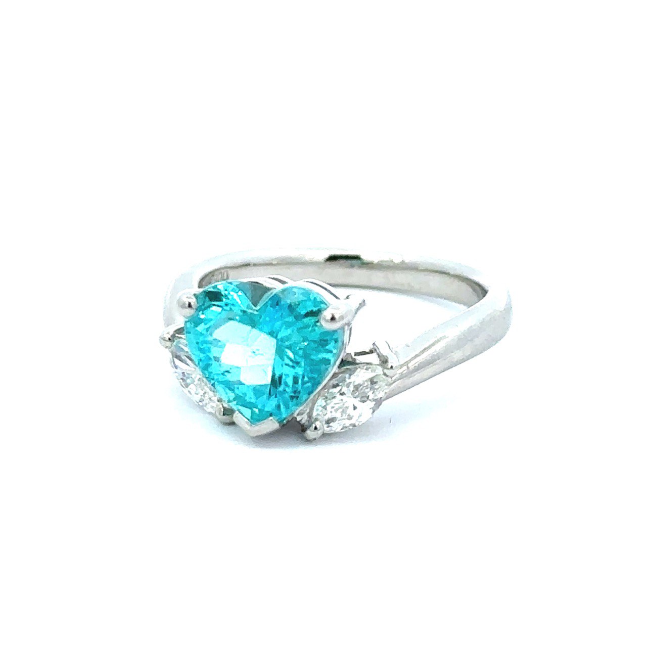 こちらのリングにはGIAの鑑別書が付属しており、その品質と価値が確かに保証されています。パライバトルマリンは産出量が限られるため非常に希少性が高く、特にハートシェイプのようなファンシーカットは市場でもほとんど目にすることがありません。
