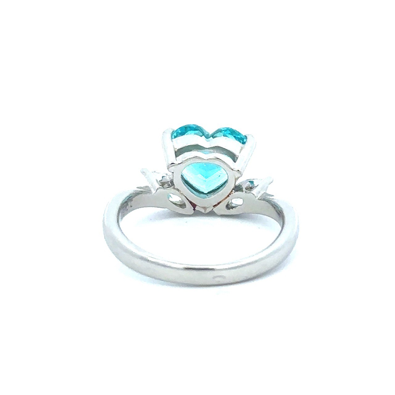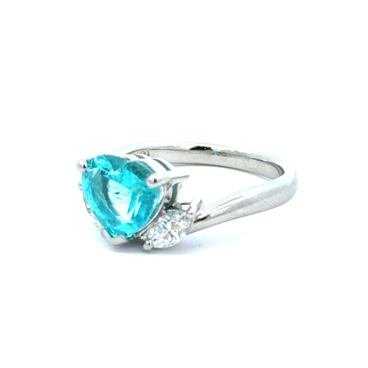 中央にセッティングされた1.93ctのハートシェイプ・パライバトルマリンは、濃く澄んだGreenish Blueが特徴で、パライバならではの鮮やかな色を際立たせています。