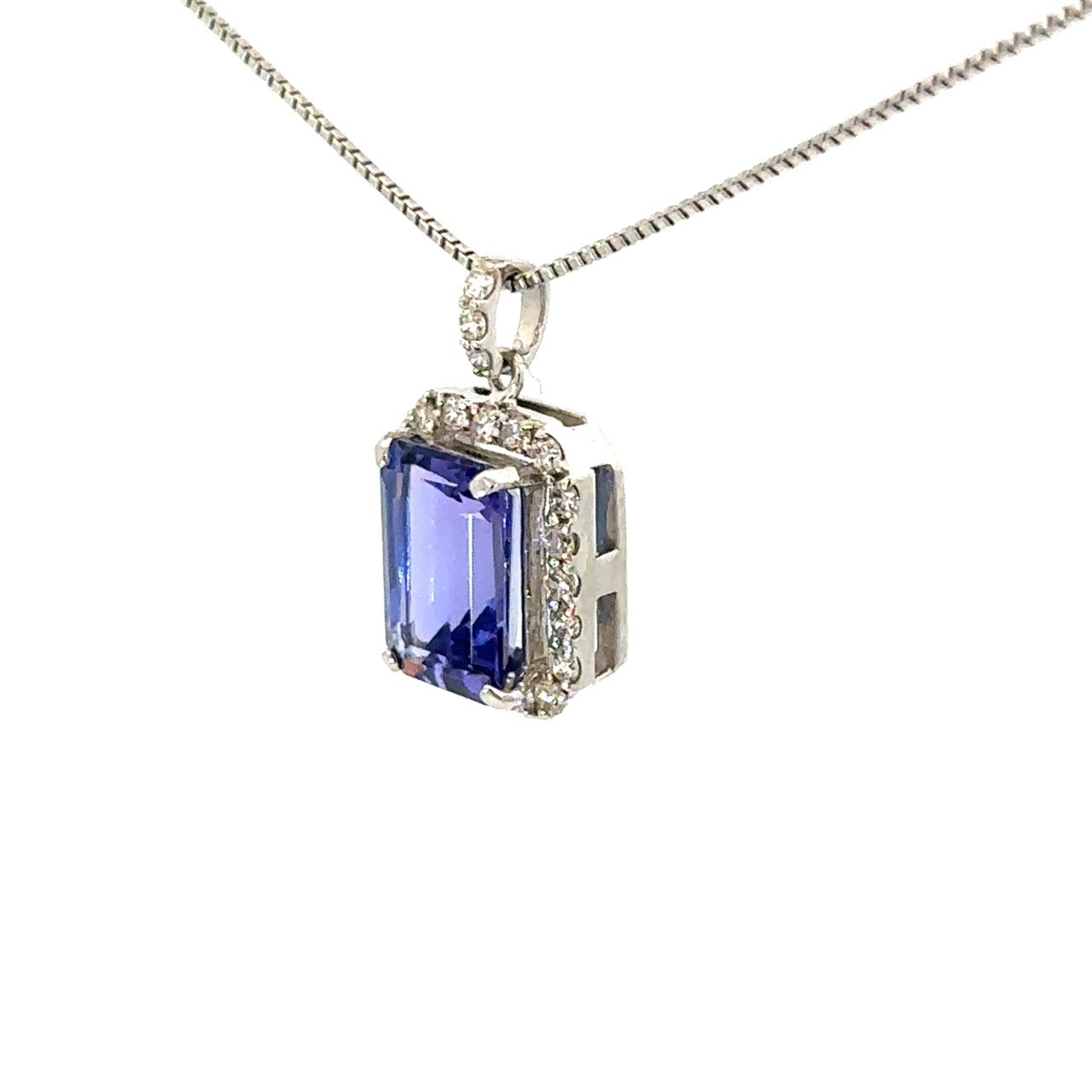 澄んだ青が印象的な、1.61ctのタンザナイトが胸元で上品に輝くネックレスです。