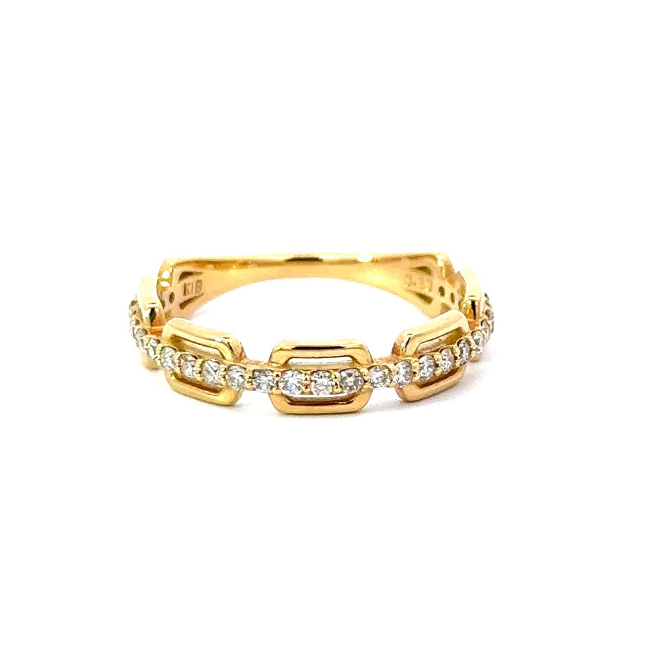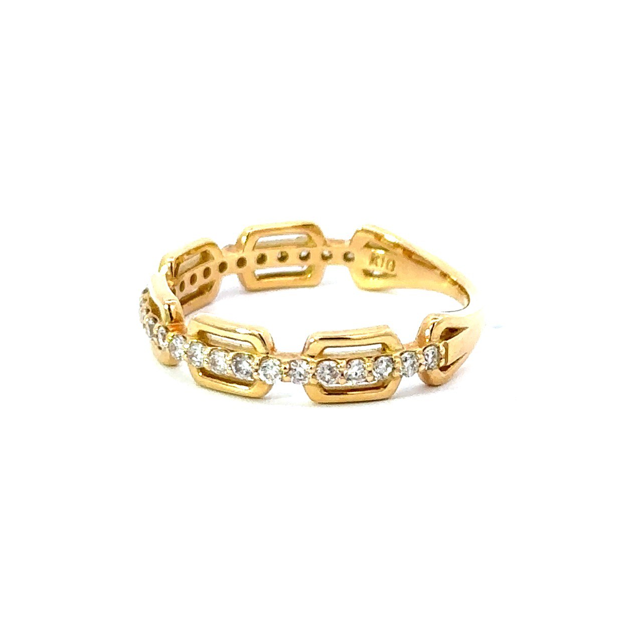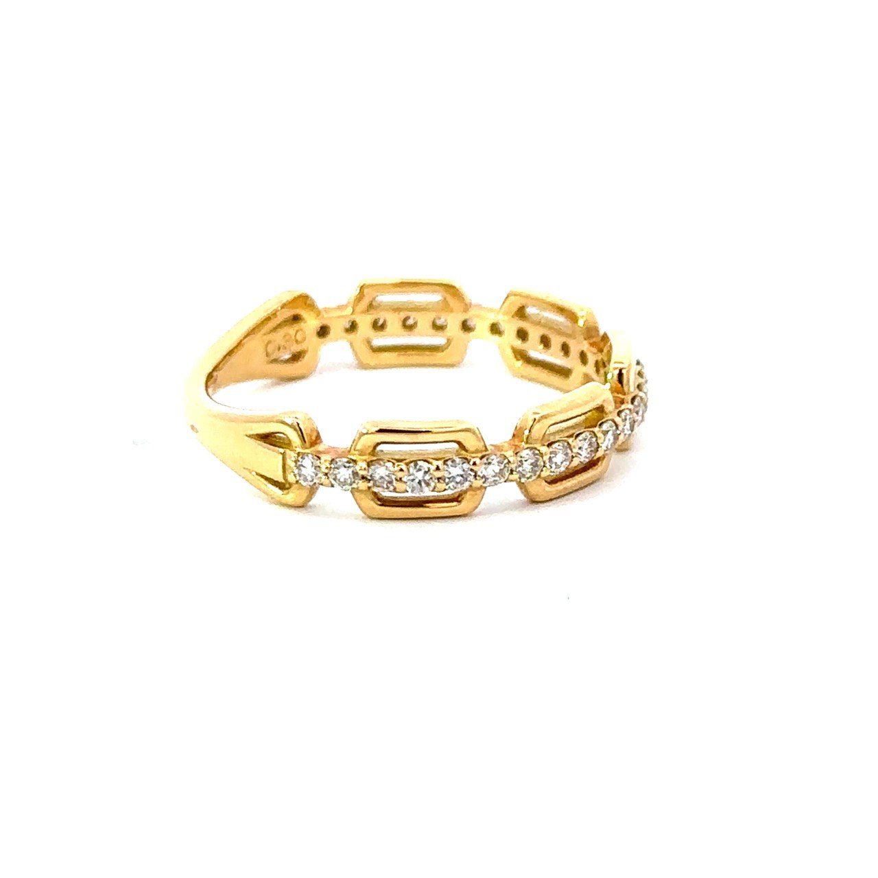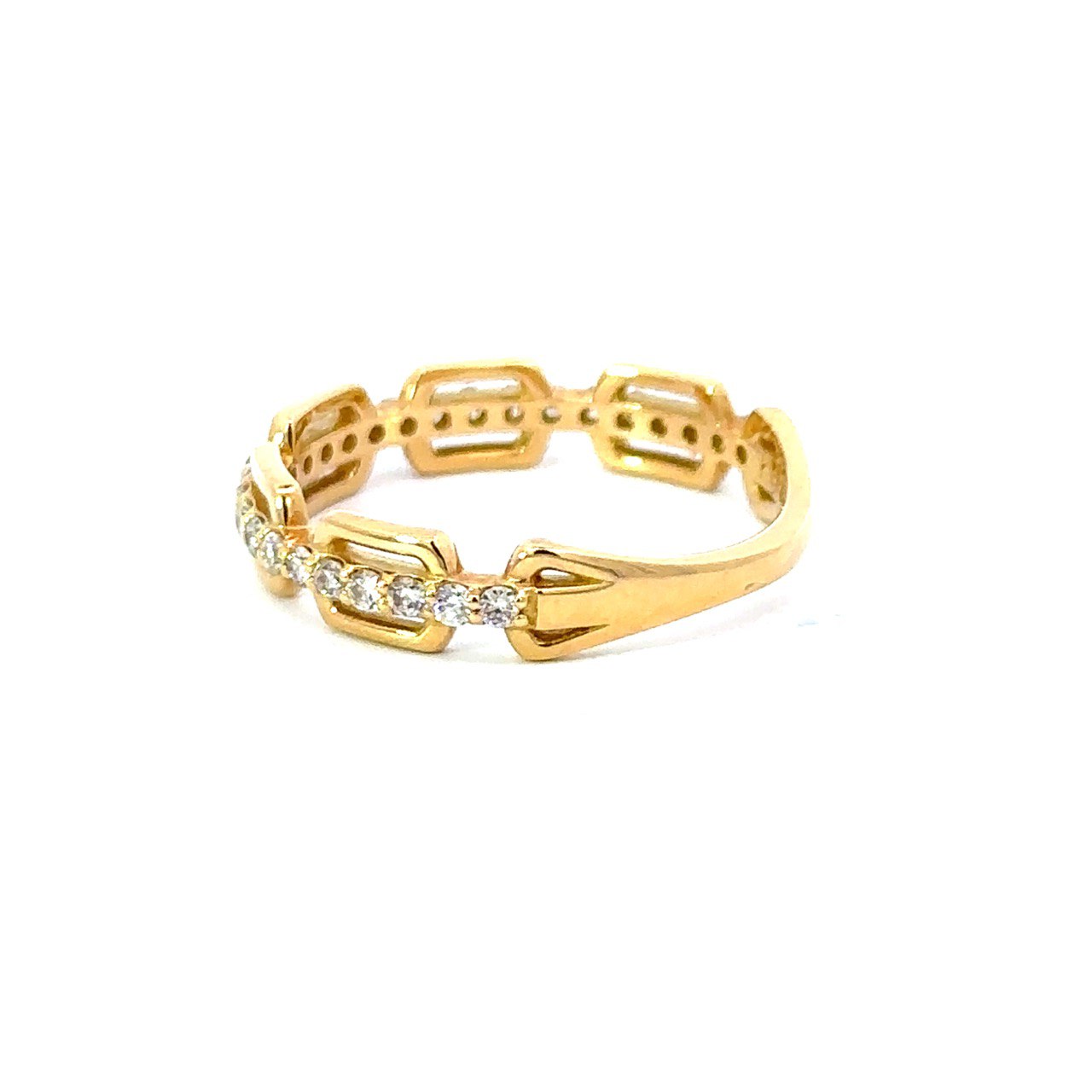 リングの半周にあしらわれたダイヤモンドが、手元に上品なきらめきを添えてくれます。