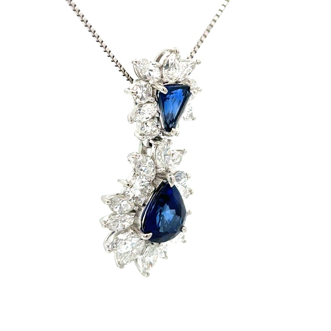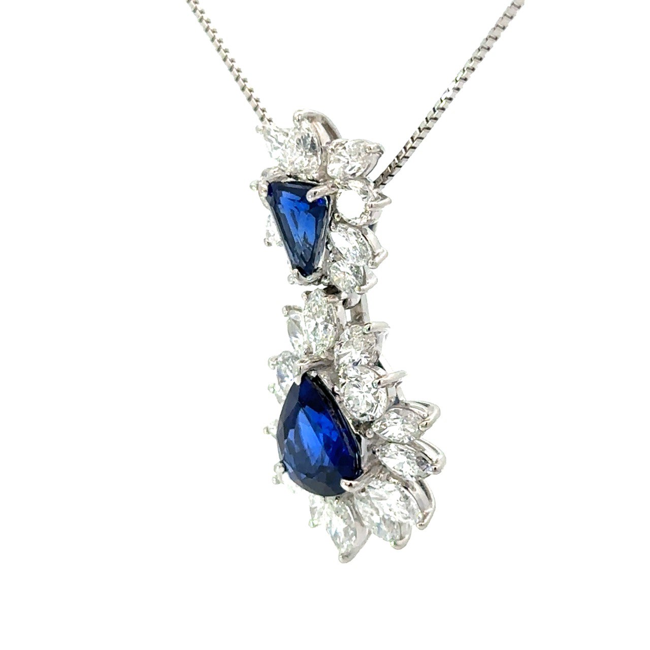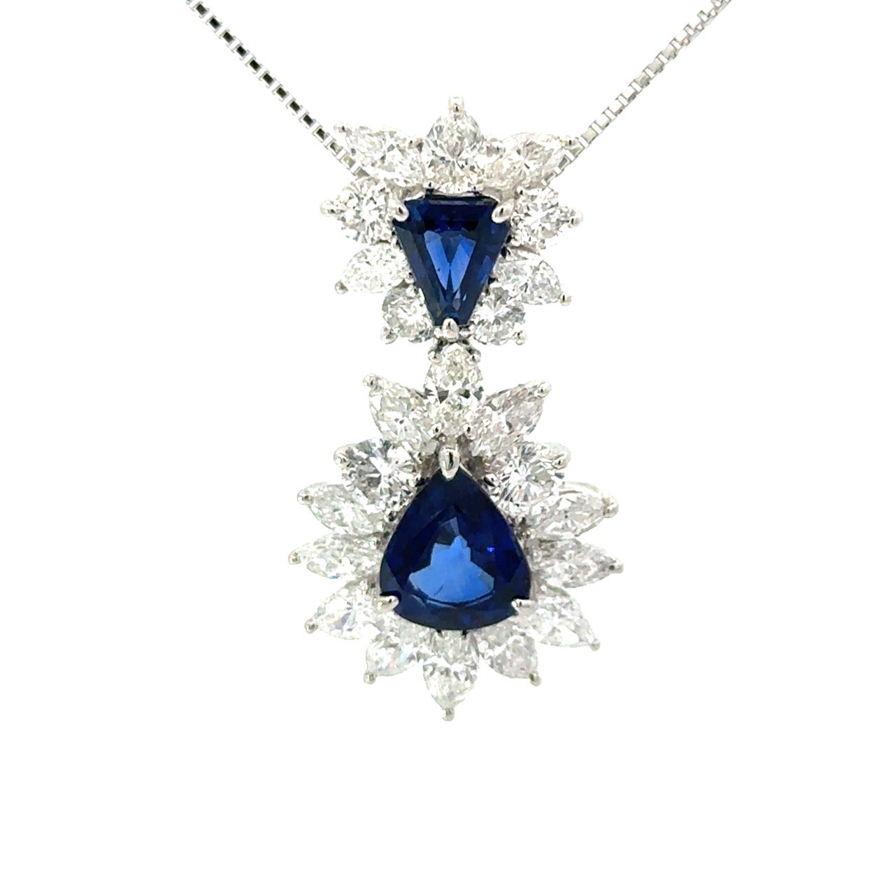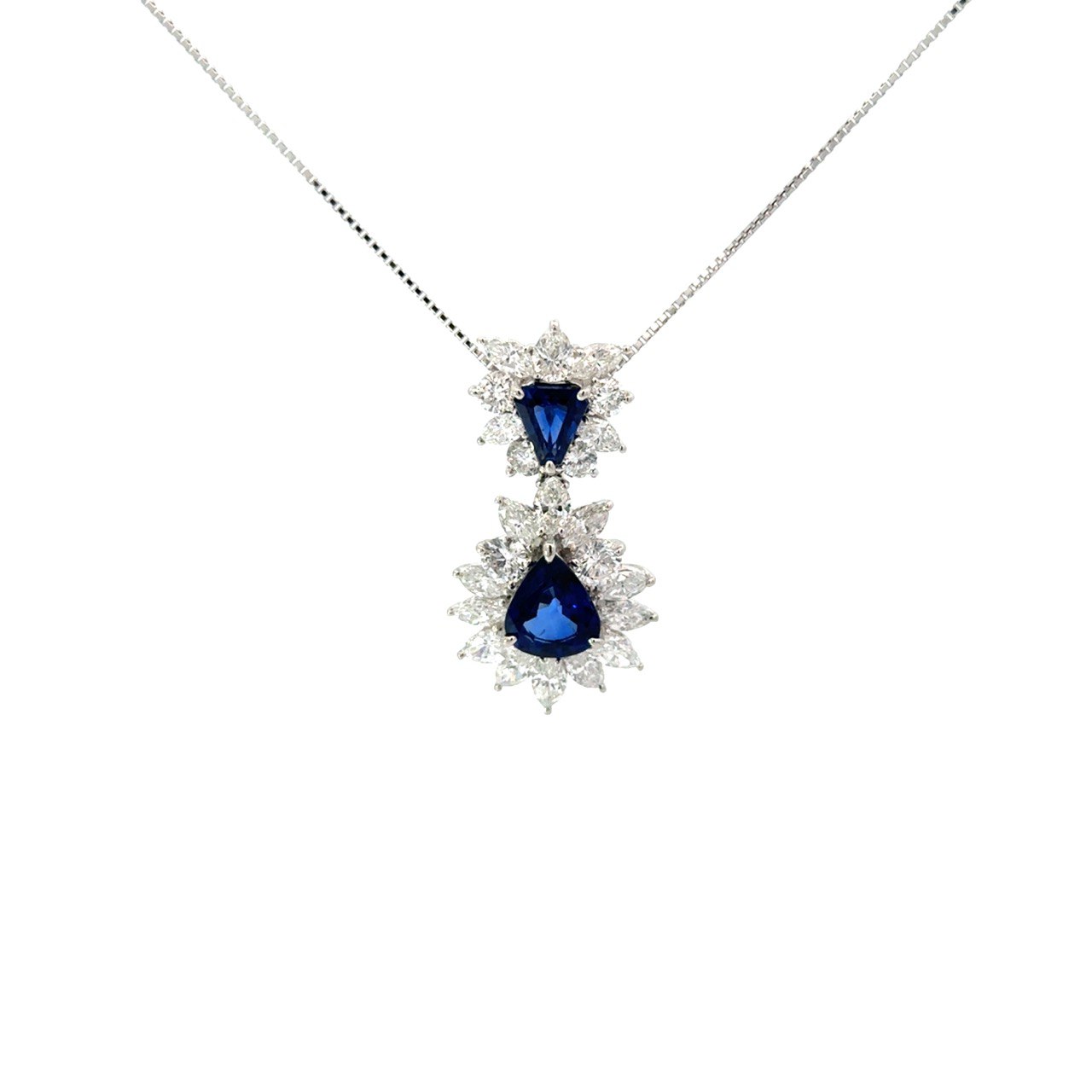 カットの違う2種類のサファイアを組み合わせたゴージャスで華やかなネックレスです。