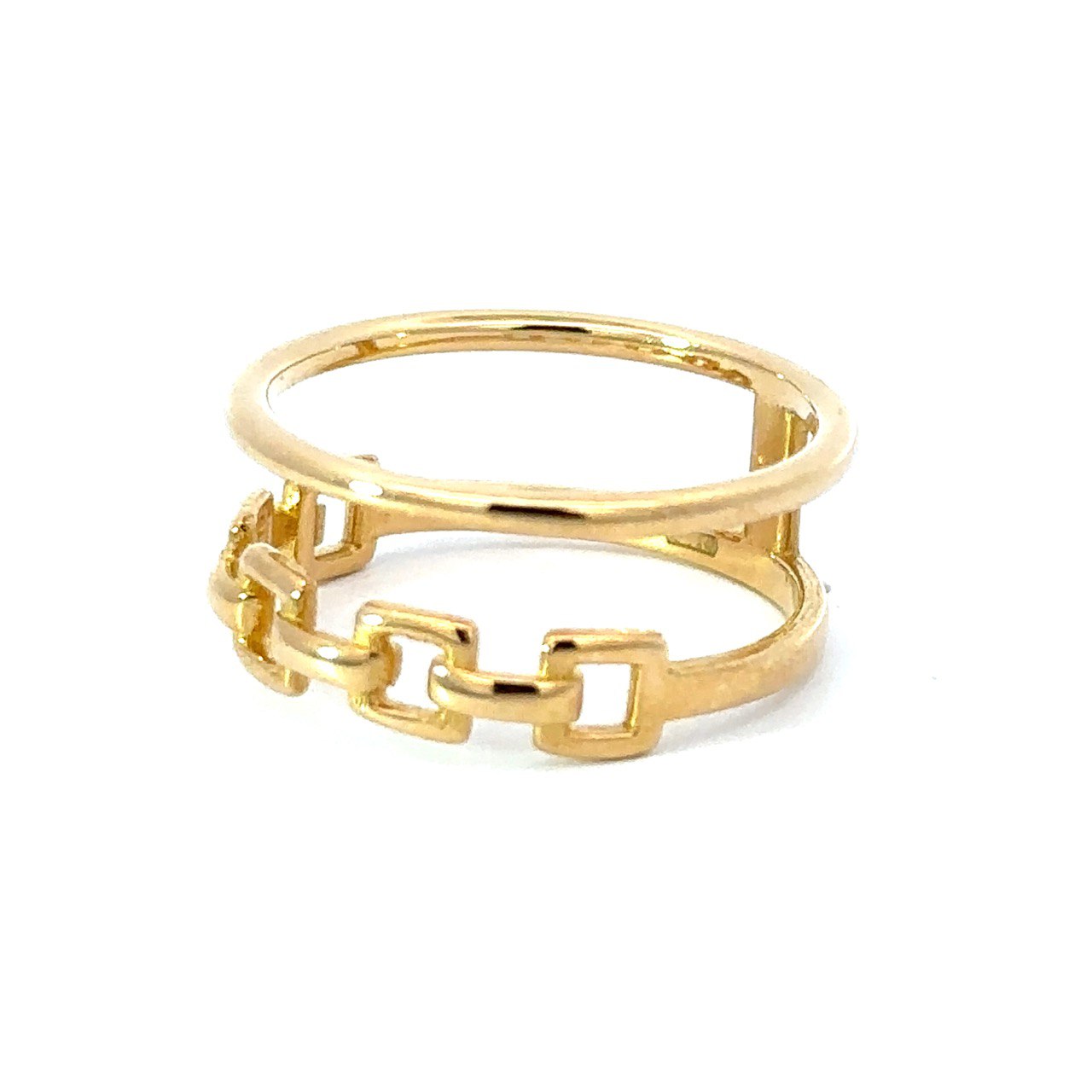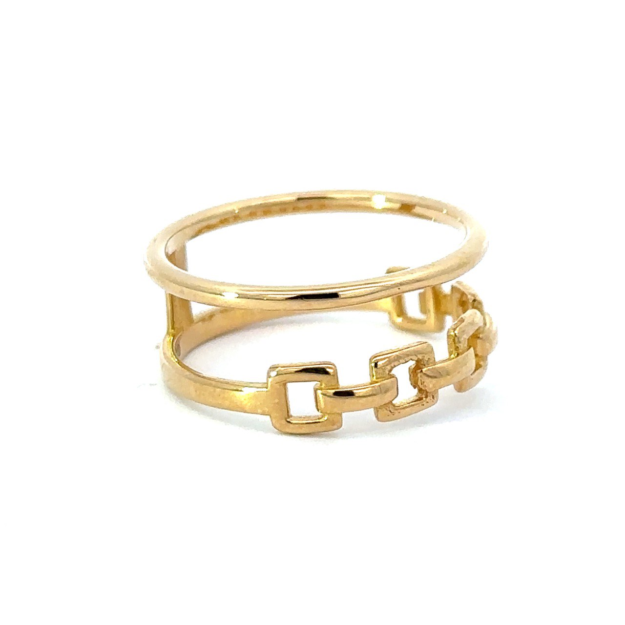 上部はすっきりとしたライン、下部にはチェーンモチーフをあしらい、異なる表情を楽しめる仕上がりです。