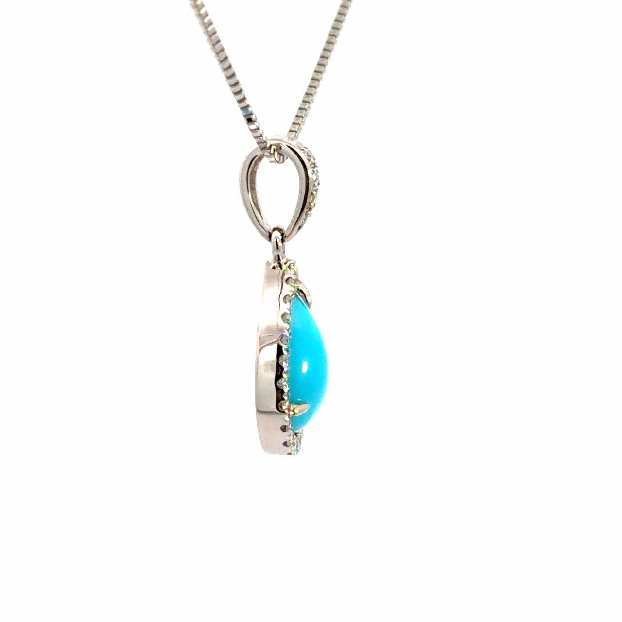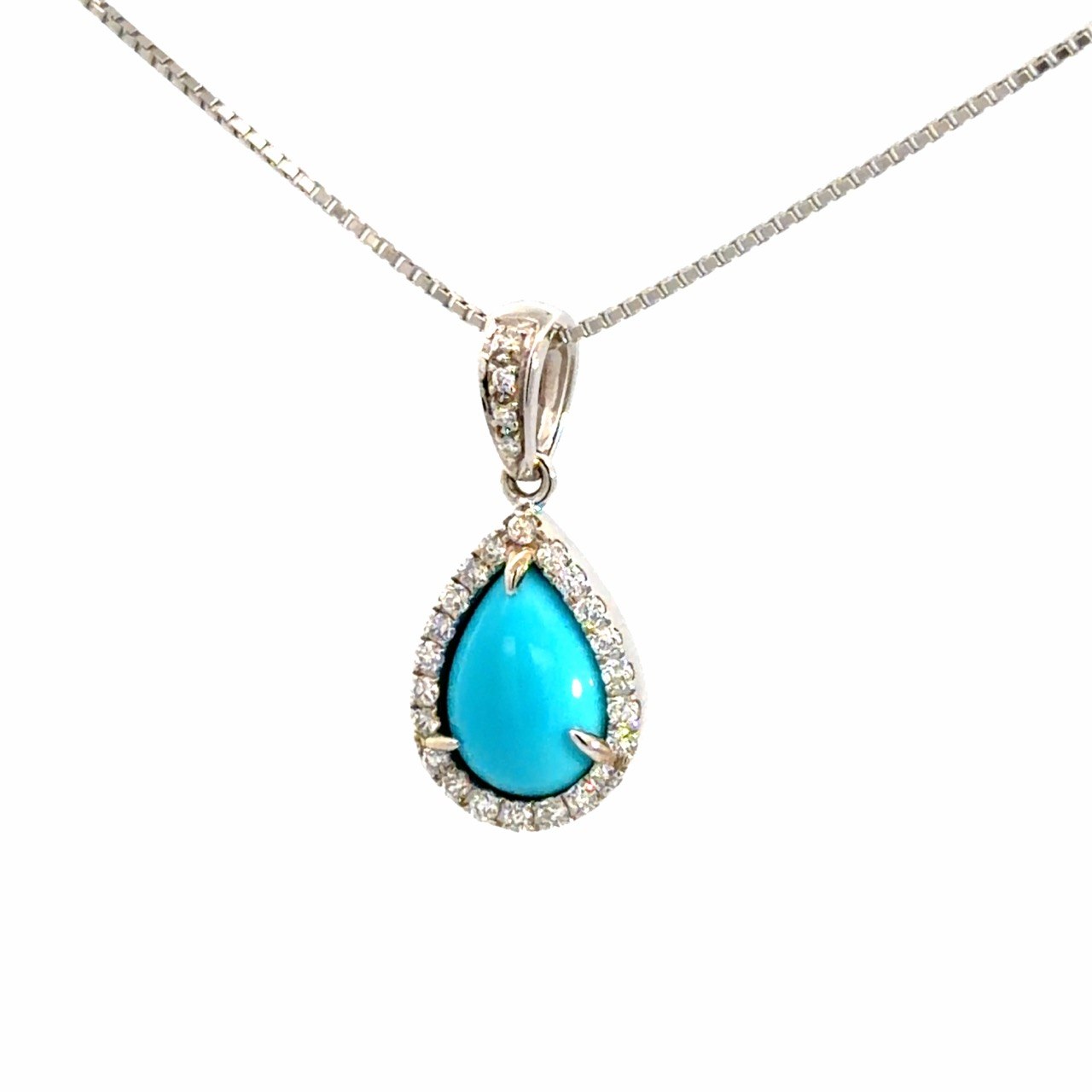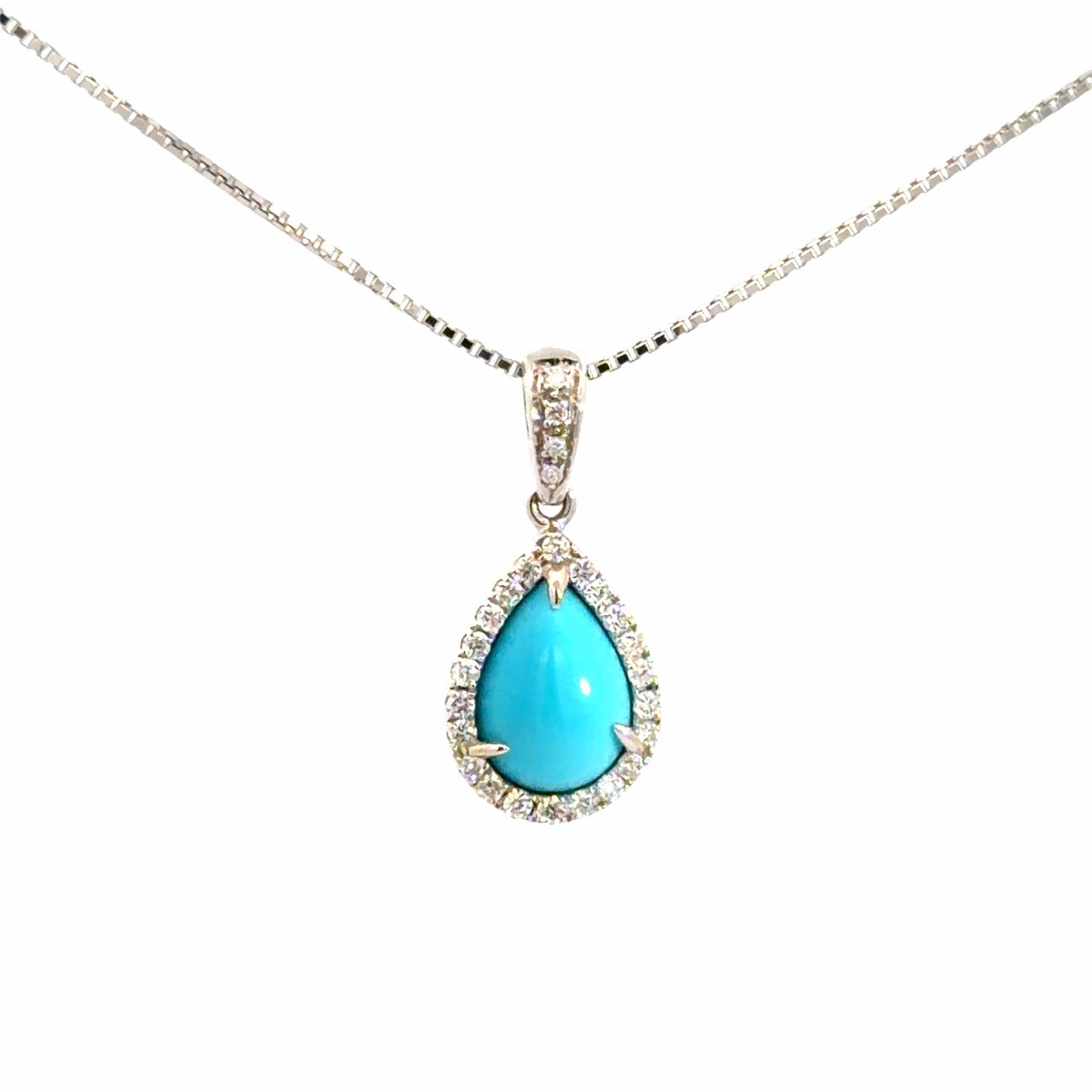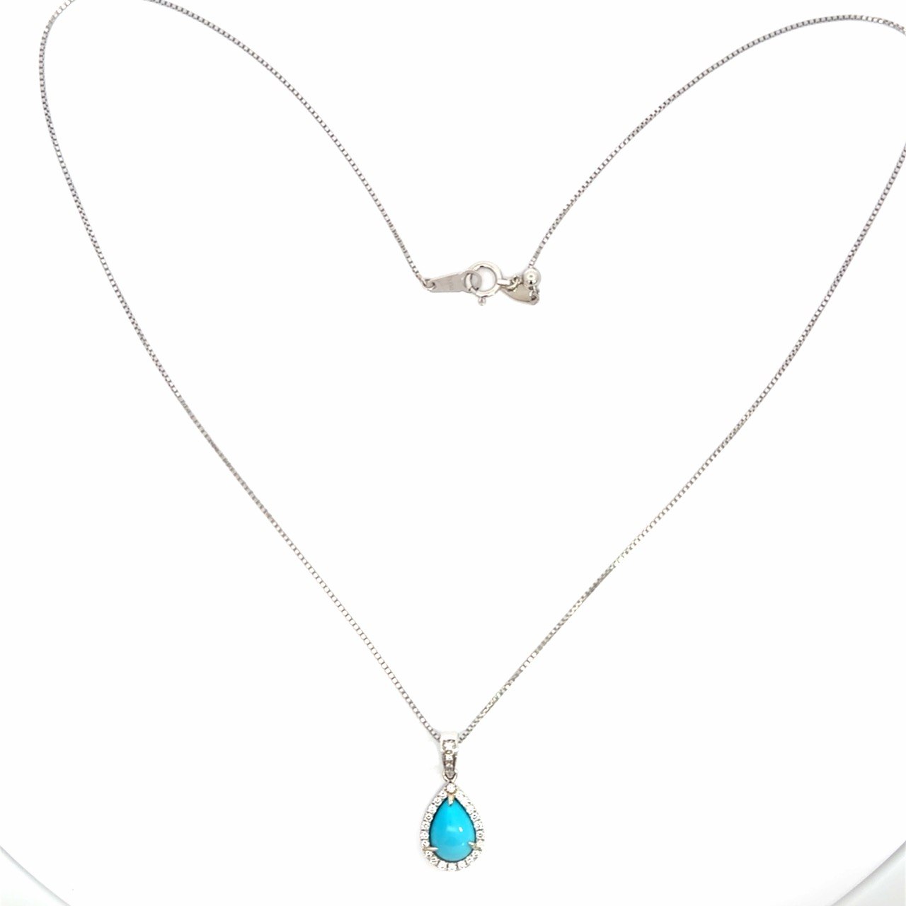 鮮やかなブルーが美しいペアシェイプのターコイズを使用したネックレスです。